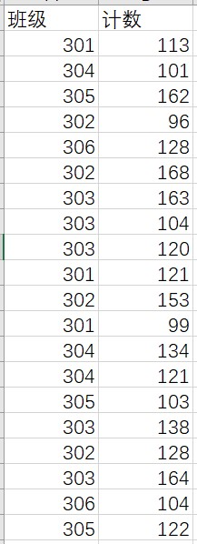 学校某年级跳绳抽测(每个班抽测5名同学)后,老师将有效数据导出为”ts.csv”文件进行保存,部分数据如图所示,现要编程统计共有多少同学在100个以下,请补全代码: