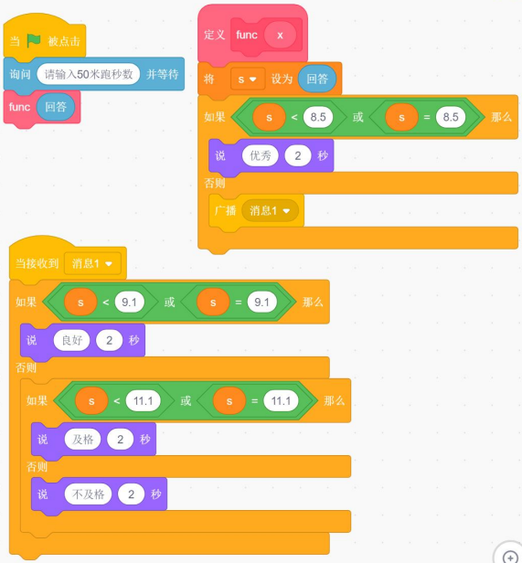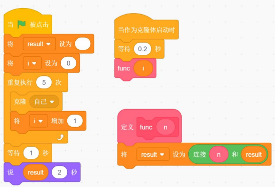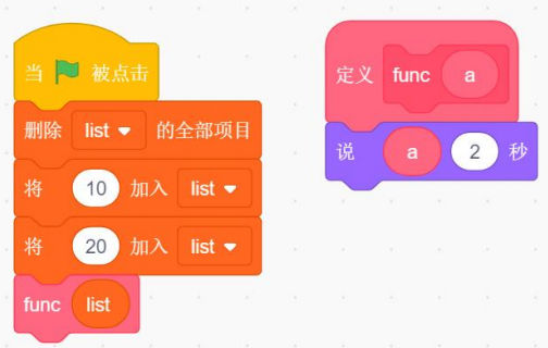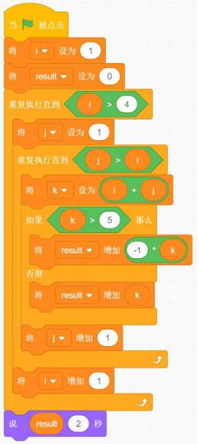 2、 输出结果存放在对应变量中即可,无需使用“说…”或“说…,2 秒”积木块