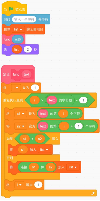 默认小猫角色,执行下列程序,输入 GESP,小猫说出的内容为 FGESP。