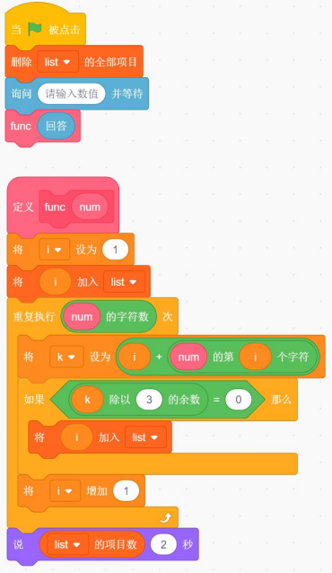 默认小猫角色,运行下列程序,输入 2025,小猫说出的内容为 3。