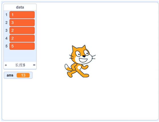 默认小猫角色,执行下列程序,小猫说出的内容为列表的第一个元素 10。